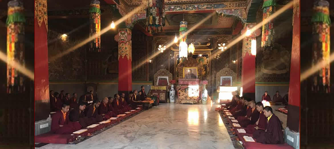 On the third day of Losar in the Fire Horse year 2026, the Mindrolling sangha gathered to offer ganachakra in commemoration of the parinirvana of Kyabje Minling Trichen.