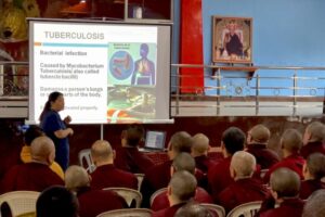 On March 6, 2026, as part of the ongoing efforts to ensure the health and well-being of the monastic sangha and the wider community, Minling Jetsün Khandro Rinpoche together with the administration of Mindrolling Monastery organized a preventative health clinic along with an educational presentation on tuberculosis.