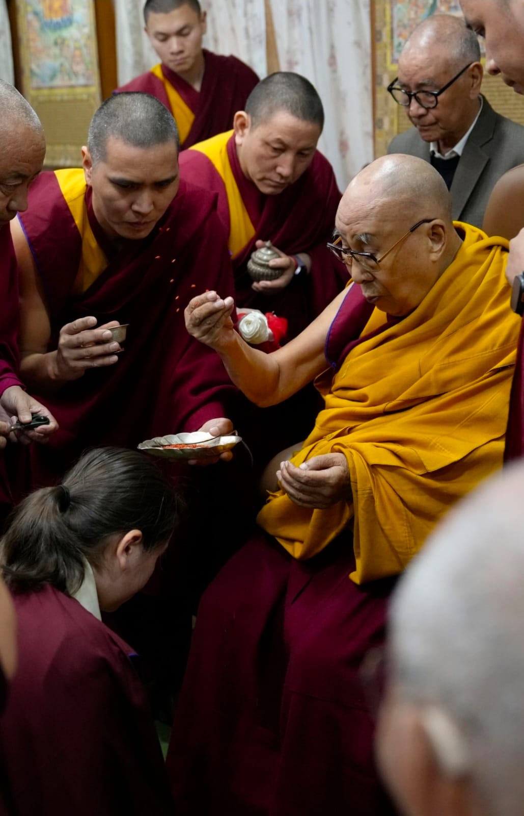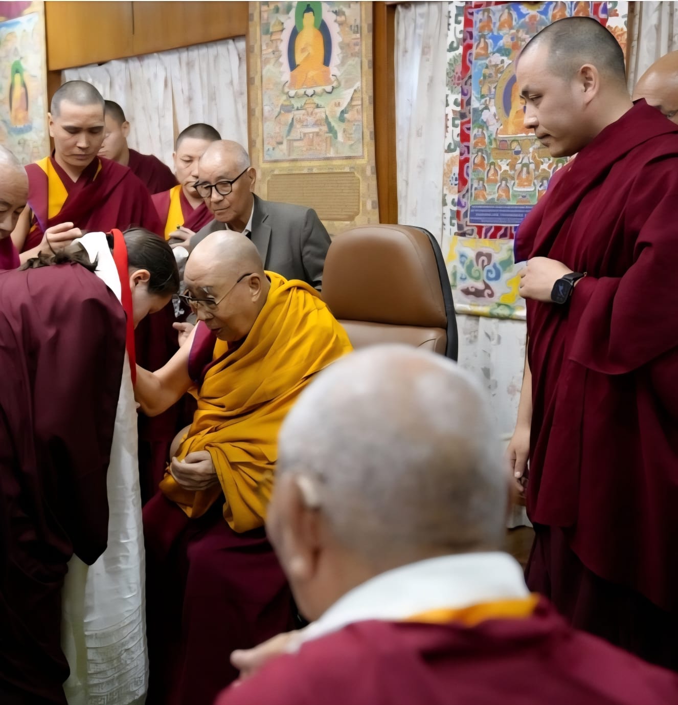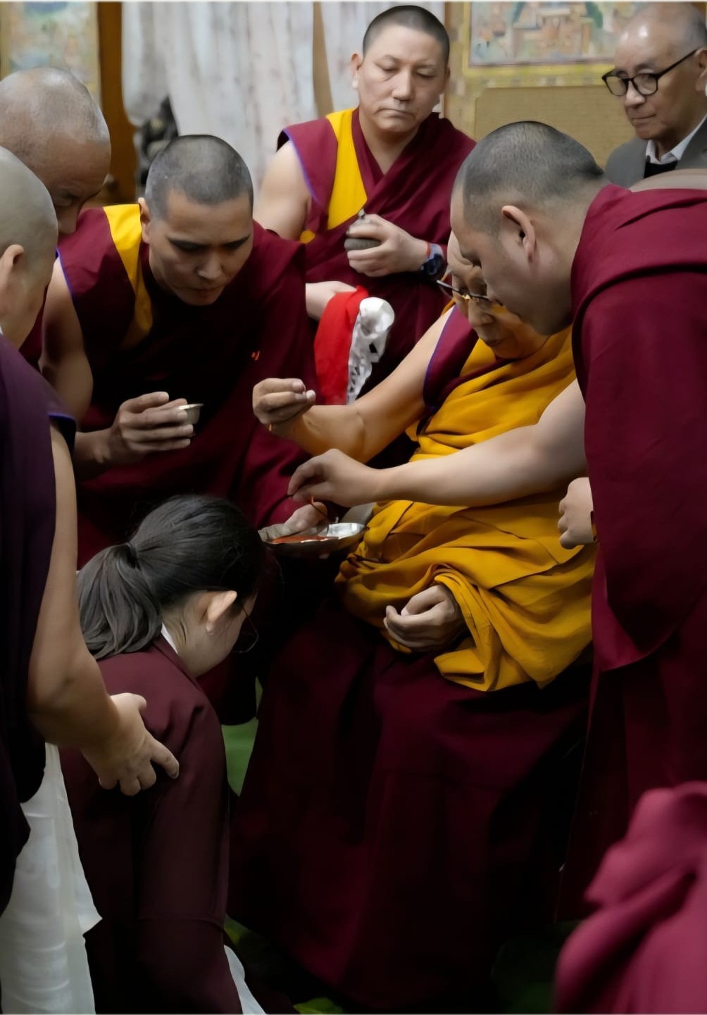 Rooted in an unbroken tradition dating back to the time of the Great Fifth Dalai Lama and Chögyal Terdag Lingpa, this sacred offering of hair continues to symbolize the deep spiritual bond between the Dalai Lamas of Tibet and the Mindrolling lineage. With the auspicious tsugphü ceremony bestowed by His Holiness upon the 13th generation of Mindrolling, the continuity of this profound tendrel is once again affirmed.