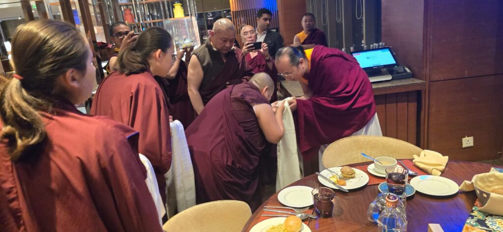 On this most auspicious and joy-filled occasion, all assembled members of the sangha joined their hearts in fervent prayer: that His Holiness may remain in this world for an ocean of kalpas for the benefit of all beings; that the two young Rinpoches may uphold the noble legacy of their sublime predecessors and raise high the victory banner of the Buddhadharma; and that the Wheel of Dharma may continue to turn unceasingly for the liberation and welfare of all beings—swift as the victorious wind-horse and vast as the expanse of space.