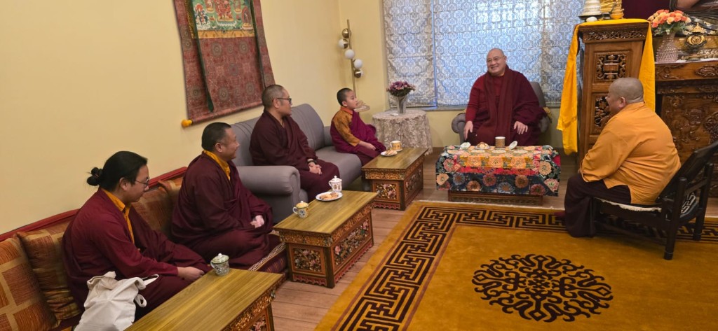 At midday on November 28th, 2025, the auspicious 8th lunar day, Kyabje Shechen Rabjam Rinpoche arrived at Mindrolling Monastery in full formal procession. All the gathered rinpoches, tulkus, khenpos, monks, nuns, and lay practitioners made vast mandala offerings and offered khatag to Kyabje Rinpoche. The entire assembly joyfully welcomed Rinpoche, and all look forward to receiving the profound and precious Kama transmissions from Kyabje Rinpoche.