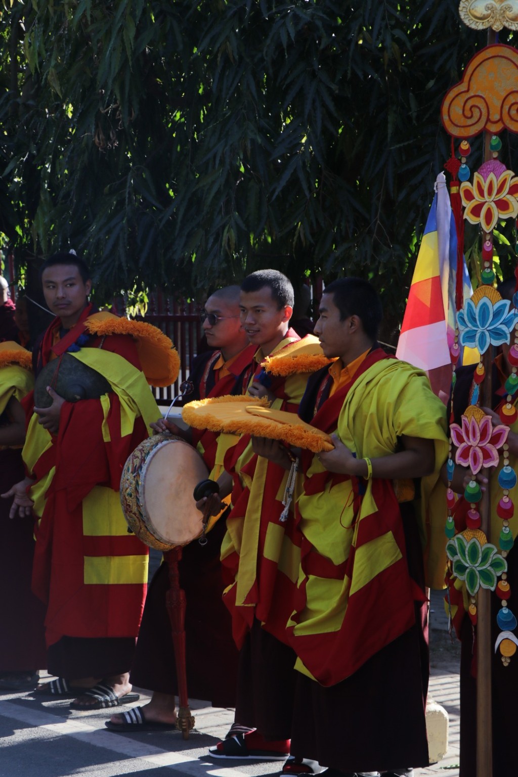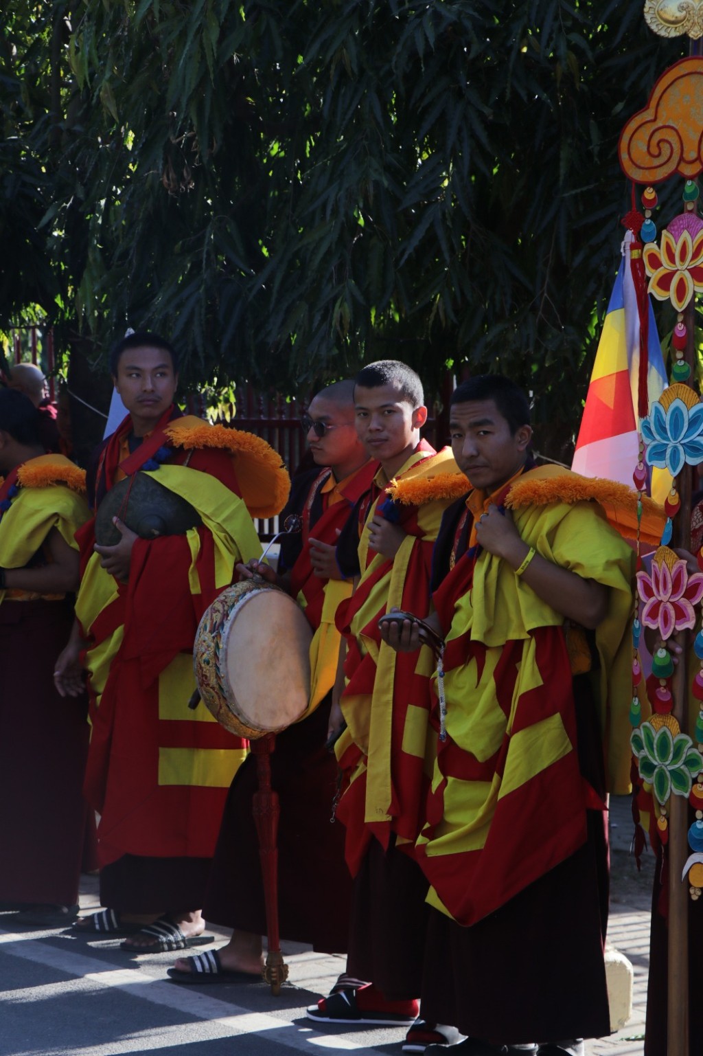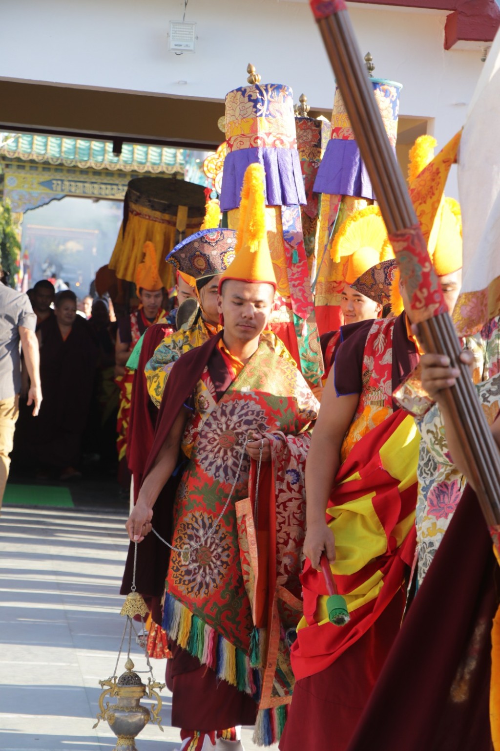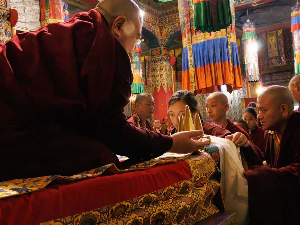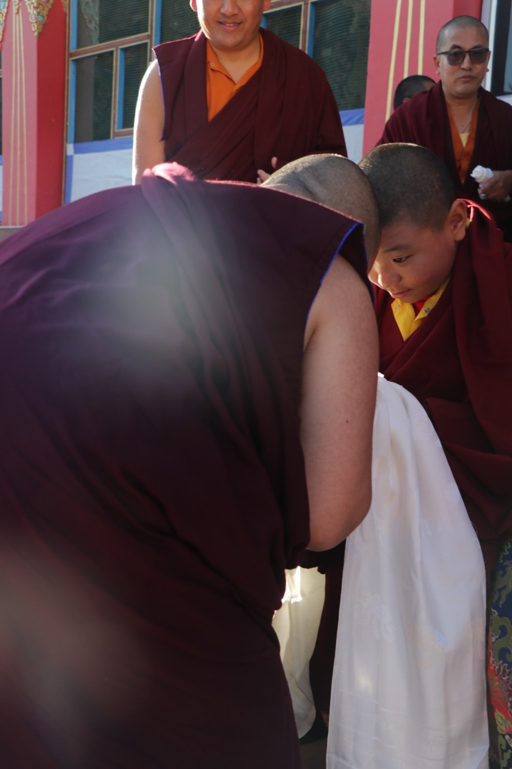 On the 7th and 8th lunar days, Mindrolling Monastery joyfully prepared to receive many rinpoches for the Nyingma Kama transmissions to be bestowed by Kyabje Shechen Rabjam Rinpoche. Each rinpoche was welcomed by the monastery and gathered assembly with a formal procession and offerings of mandala and khatag.
