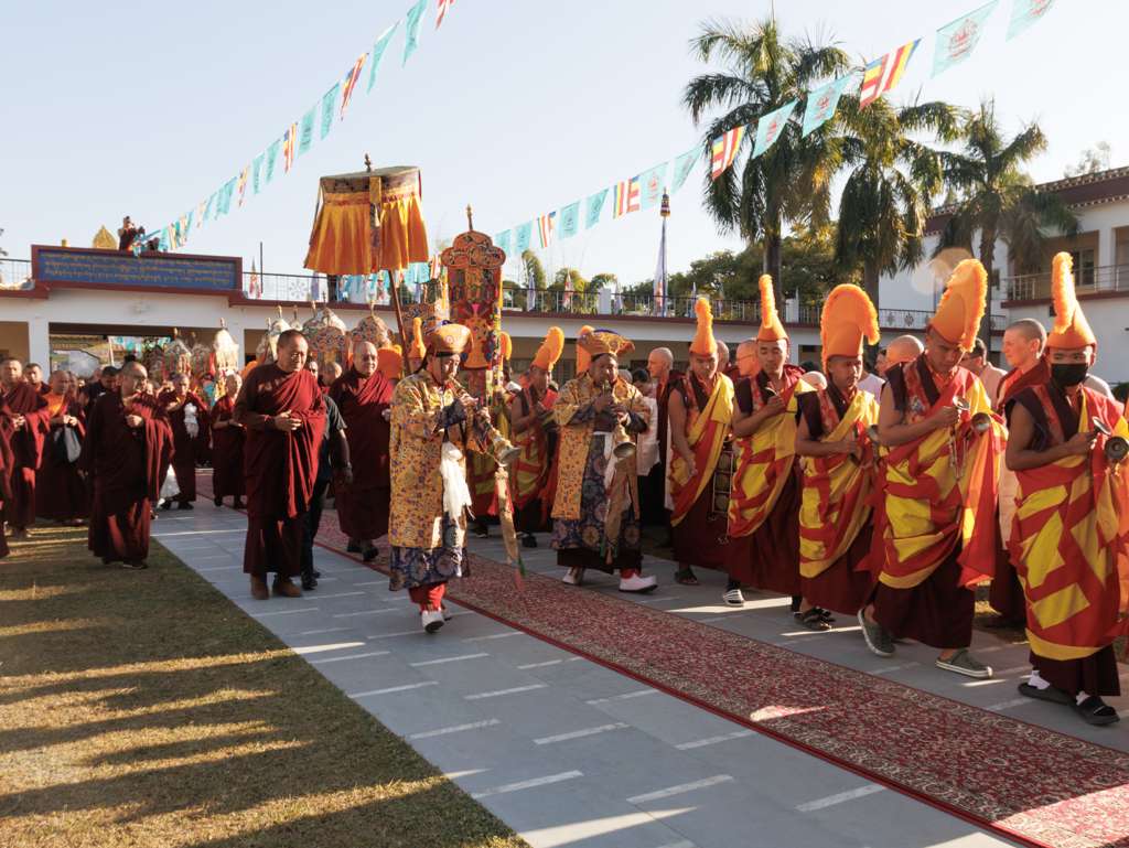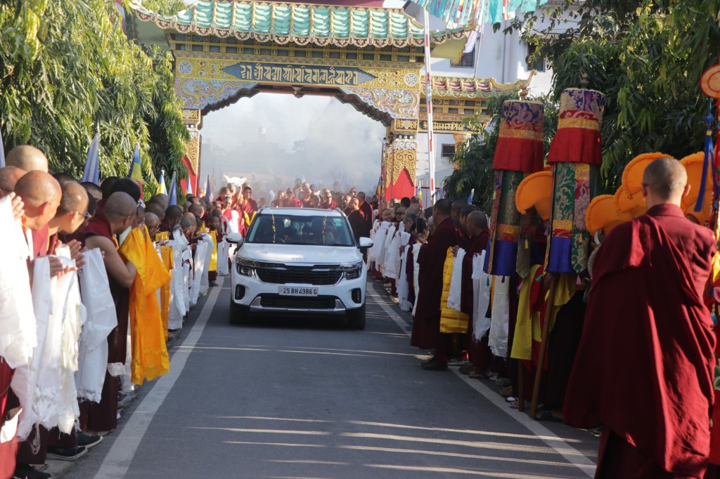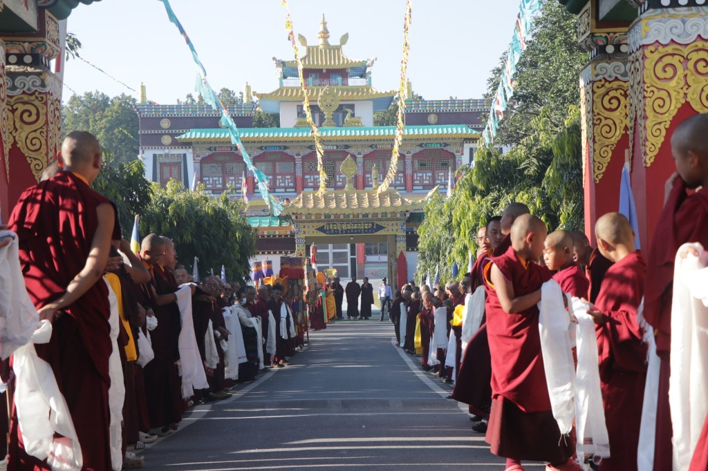 At midday on November 28th, 2025, the auspicious 8th lunar day, Kyabje Shechen Rabjam Rinpoche arrived at Mindrolling Monastery in full formal procession. All the gathered rinpoches, tulkus, khenpos, monks, nuns, and lay practitioners made vast mandala offerings and offered khatag to Kyabje Rinpoche. The entire assembly joyfully welcomed Rinpoche, and all look forward to receiving the profound and precious Kama transmissions from Kyabje Rinpoche.