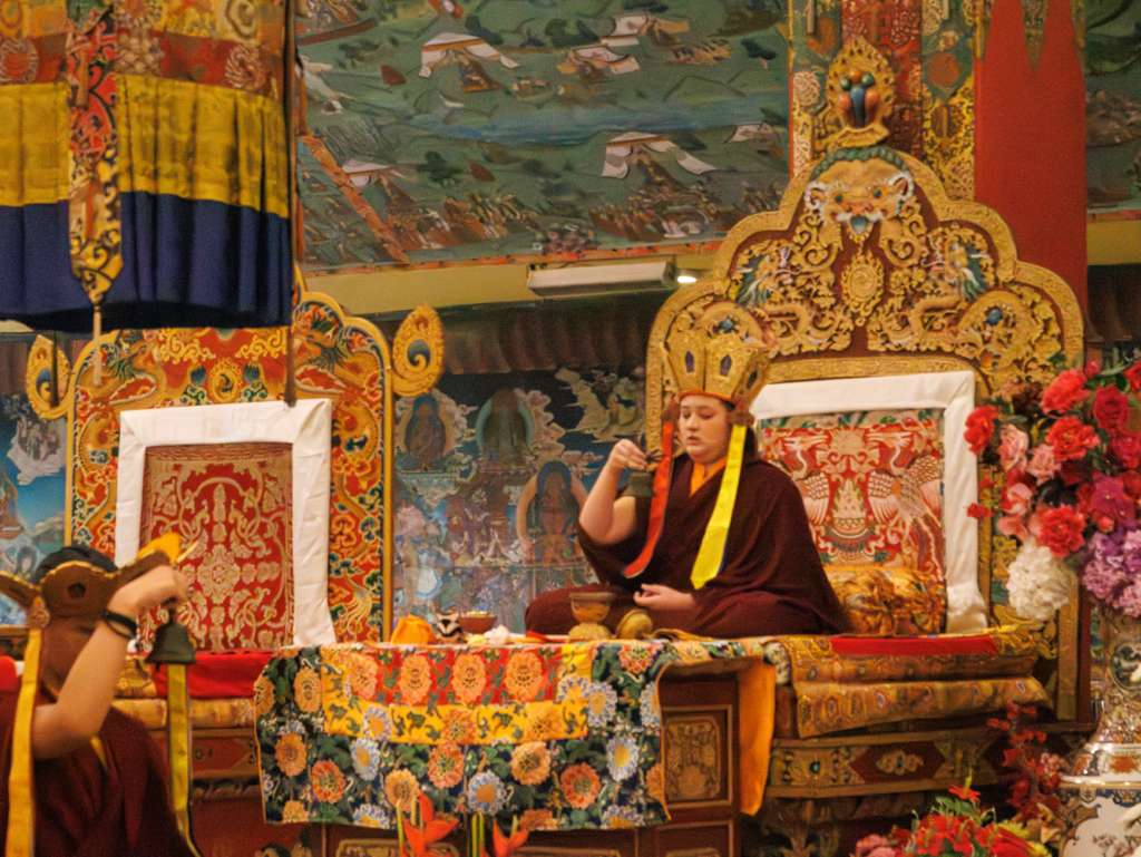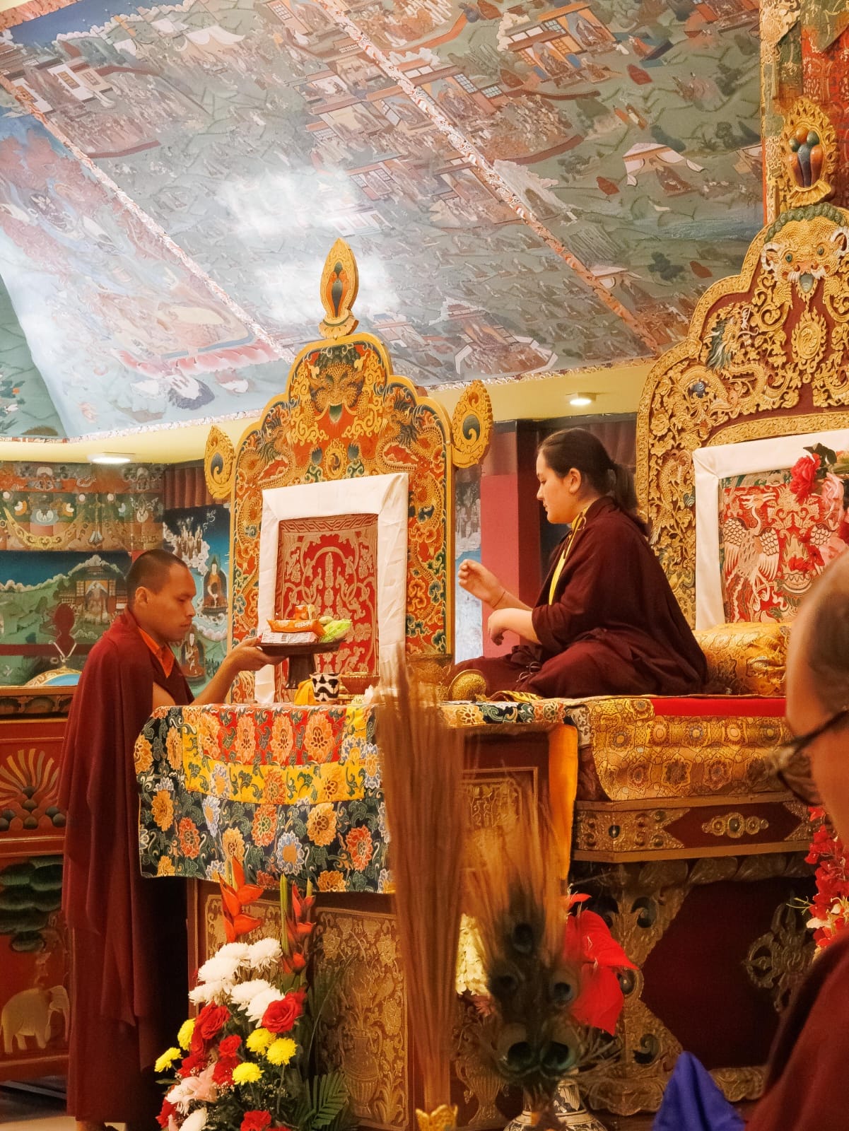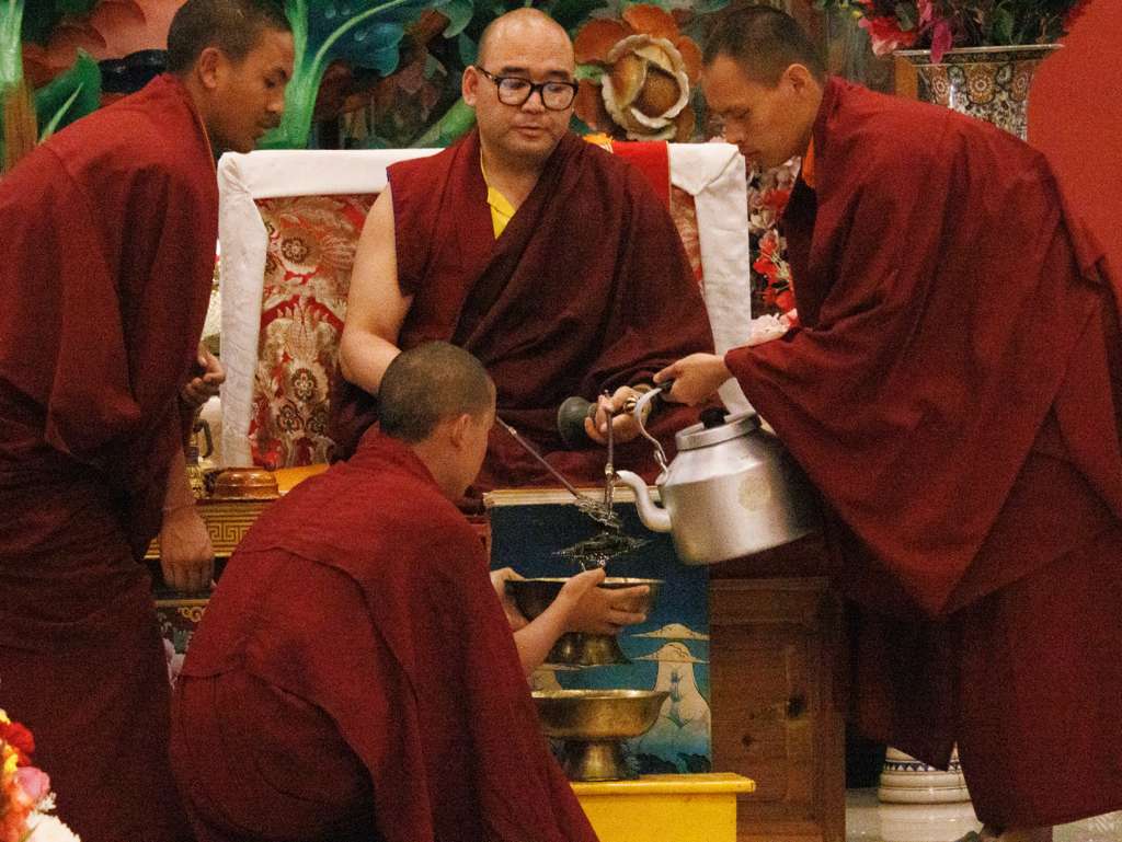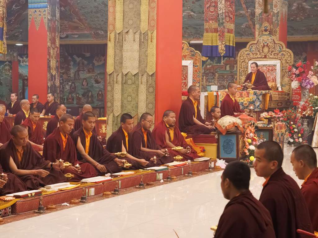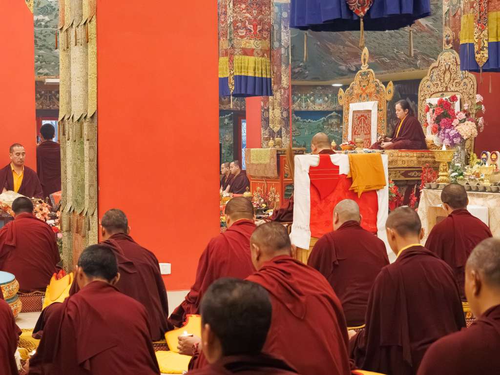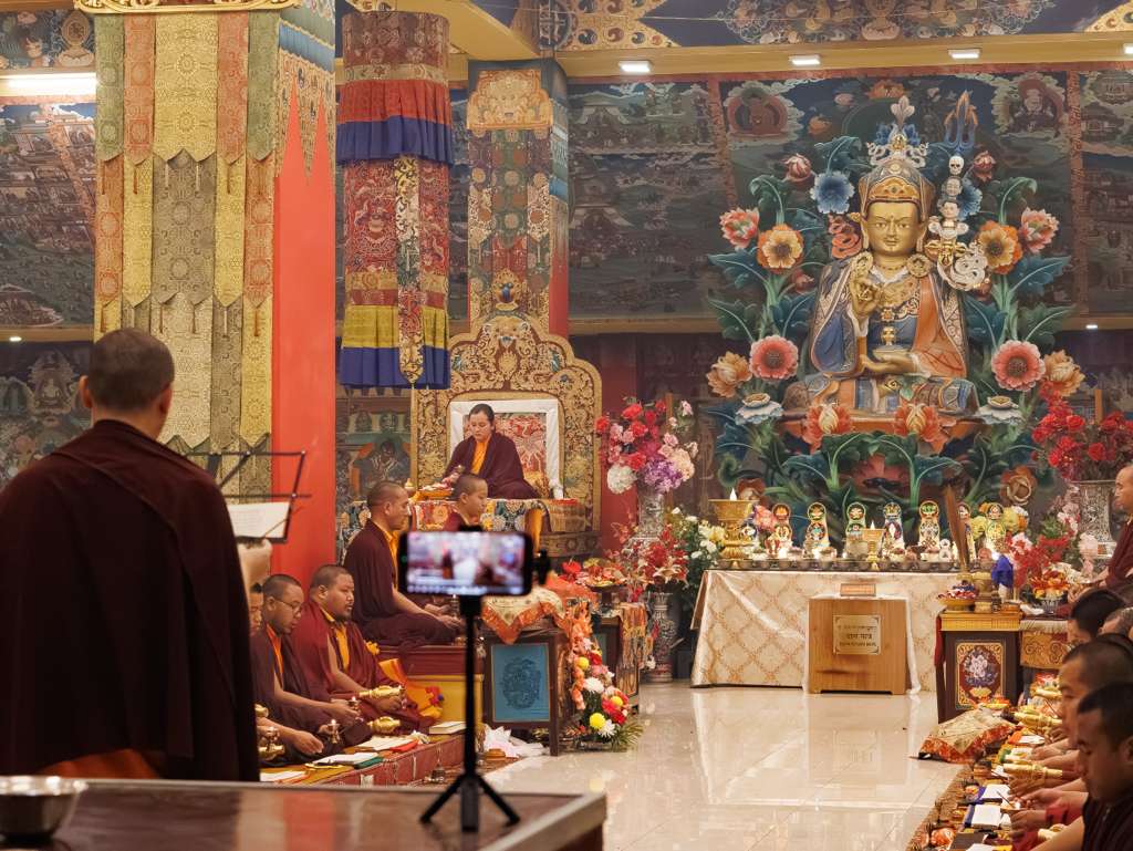 The blessings of the lineage were palpable as this year’s practice was presided over by Kyabje Minling Dungse Rinpoche, the 13th throne holder of Mindrolling who took his seat on the throne and led the gathered assembly during the intensive days of practice. This most fortunate occasion was blessed with presence of the Kyabje Minling JetsĂ¼n Rinpoche, Kyabje Minling JetsĂ¼n Khandro Rinpoche, Kyabje Trulshig Yangsi Rinpoche, the Dorje Lopön Khentrul Marpa Rinpoche, Minling Umdze Lodroe Gyaltsen, along with many rinpoches, tulkus, khenpos, and monks, nuns and lay practitioners from all around the world.