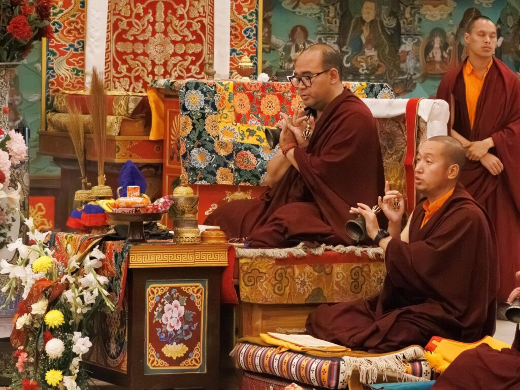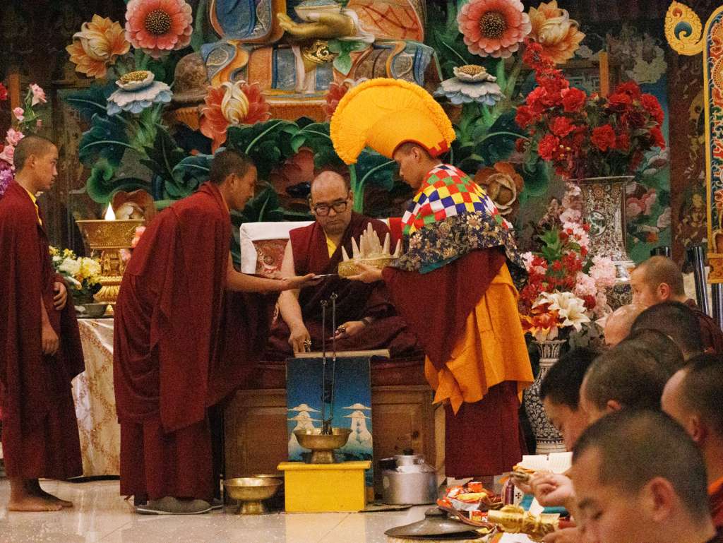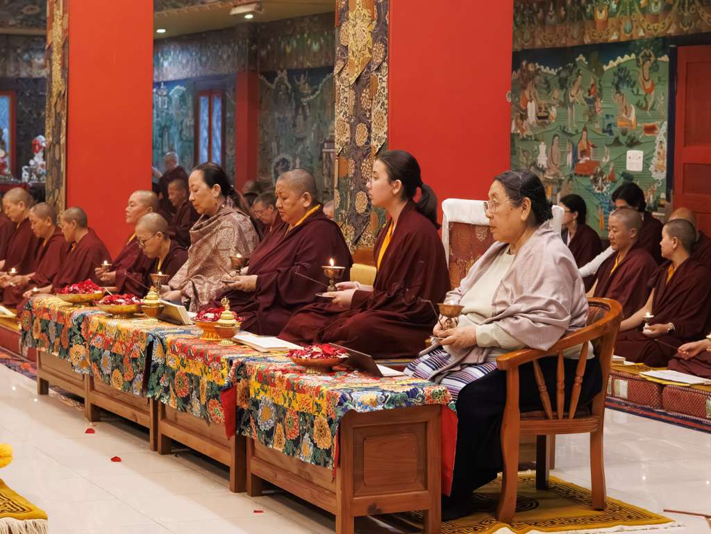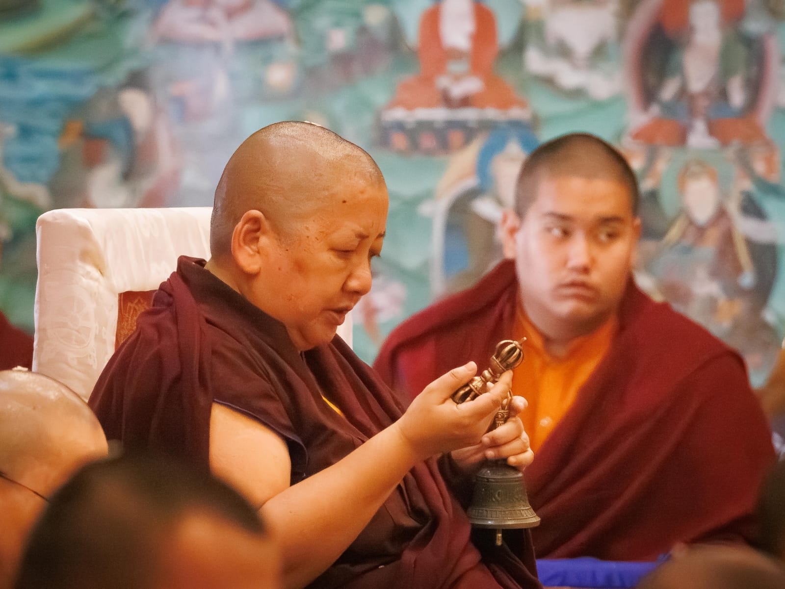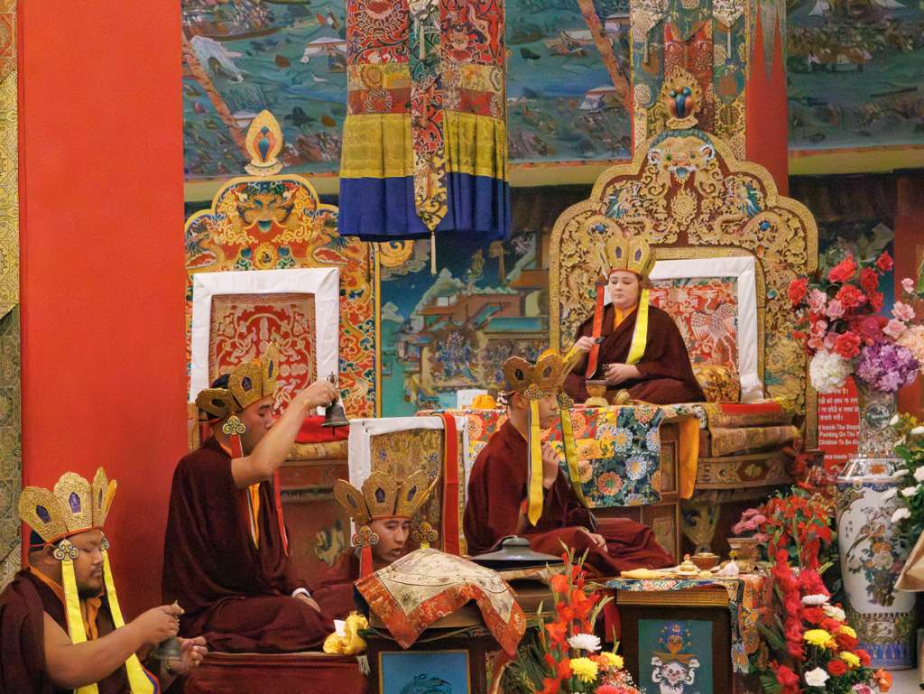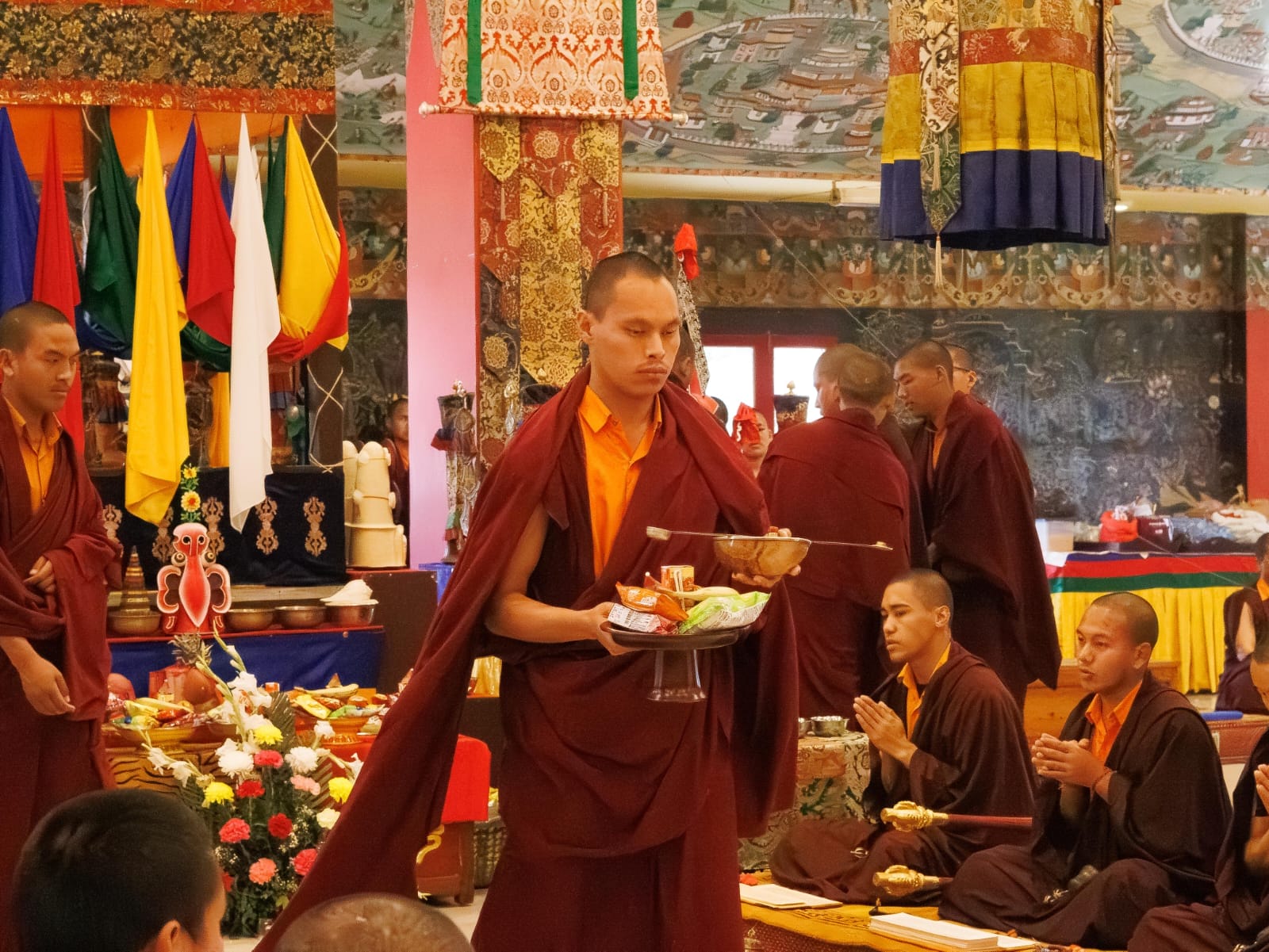The blessings of the lineage were palpable as this year’s practice was presided over by Kyabje Minling Dungse Rinpoche, the 13th throne holder of Mindrolling who took his seat on the throne and led the gathered assembly during the intensive days of practice. This most fortunate occasion was blessed with presence of the Kyabje Minling JetsĂ¼n Rinpoche, Kyabje Minling JetsĂ¼n Khandro Rinpoche, Kyabje Trulshig Yangsi Rinpoche, the Dorje Lopön Khentrul Marpa Rinpoche, Minling Umdze Lodroe Gyaltsen, along with many rinpoches, tulkus, khenpos, and monks, nuns and lay practitioners from all around the world.