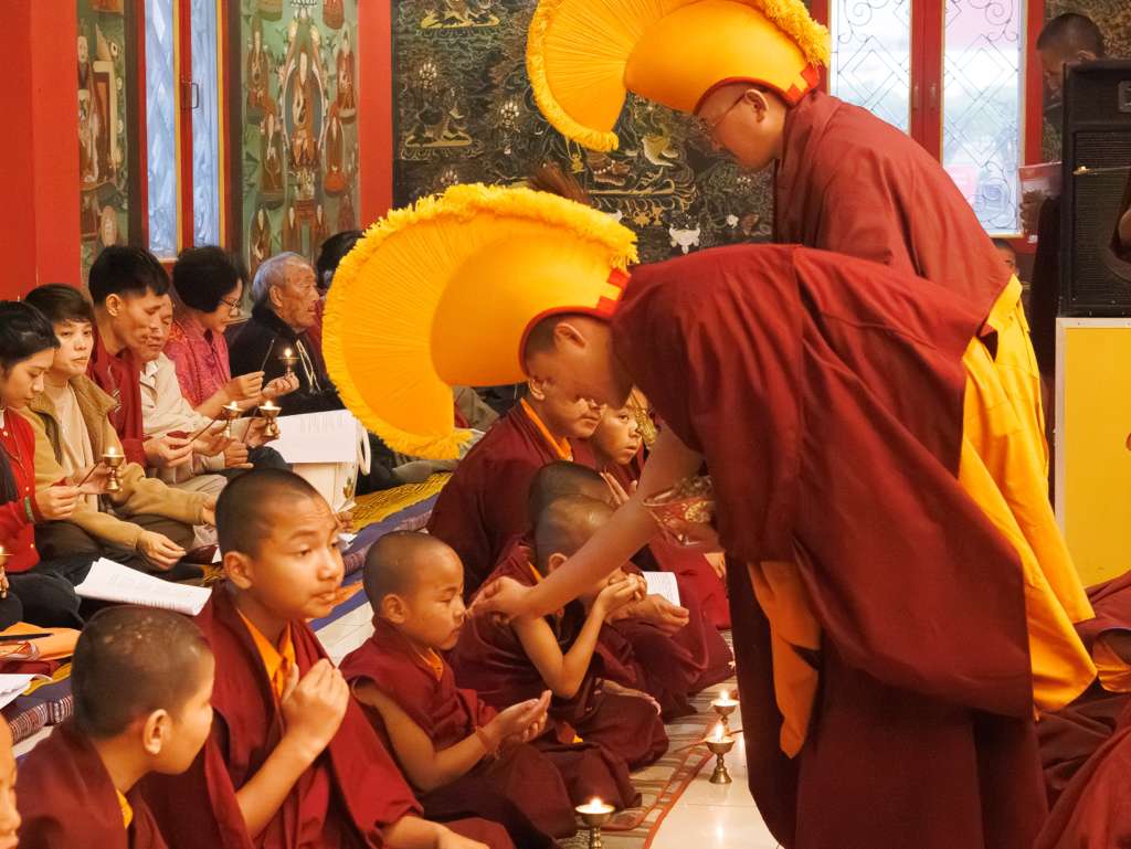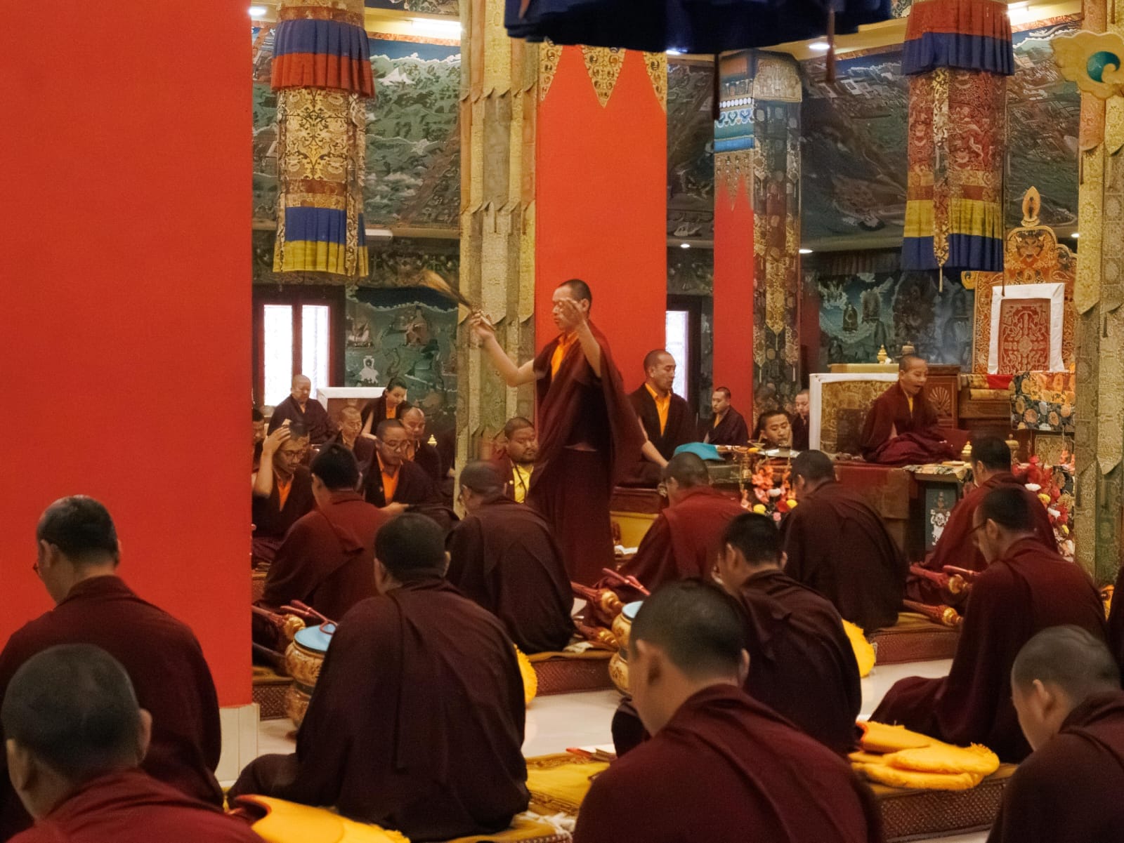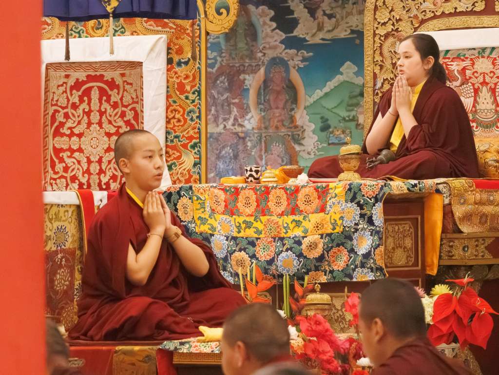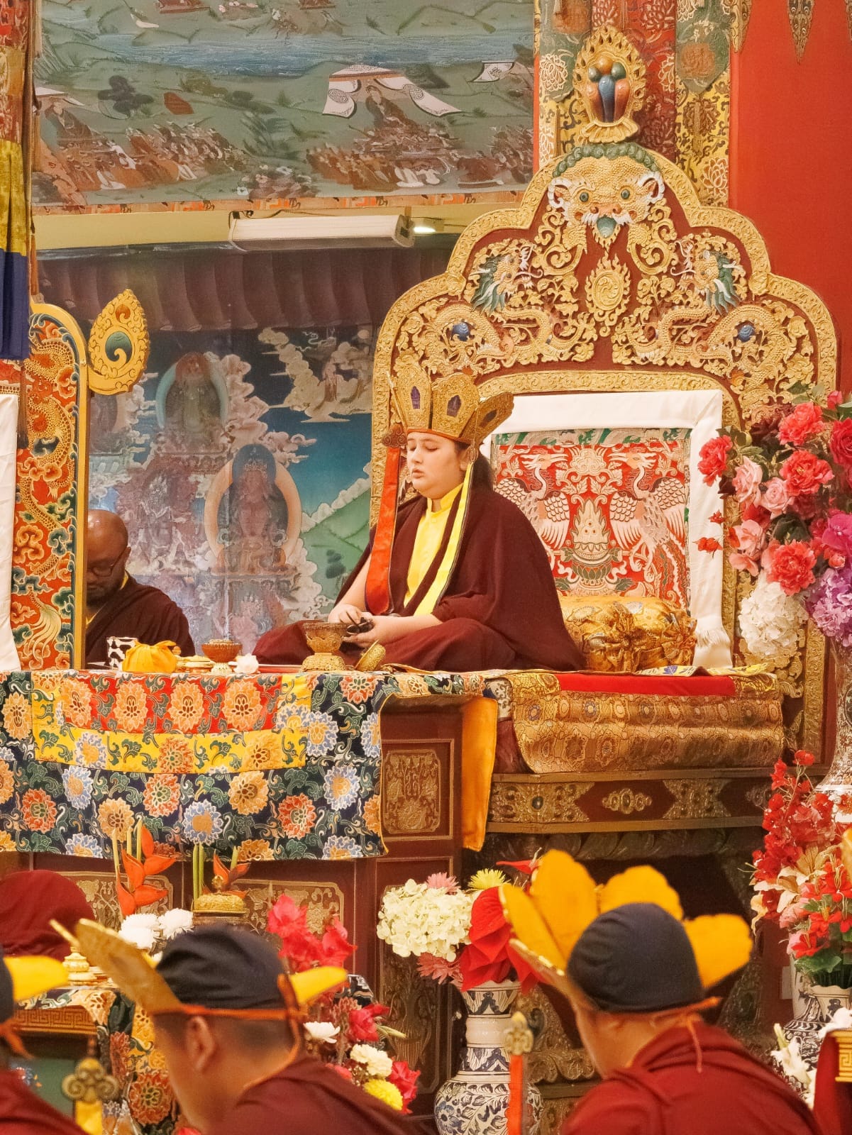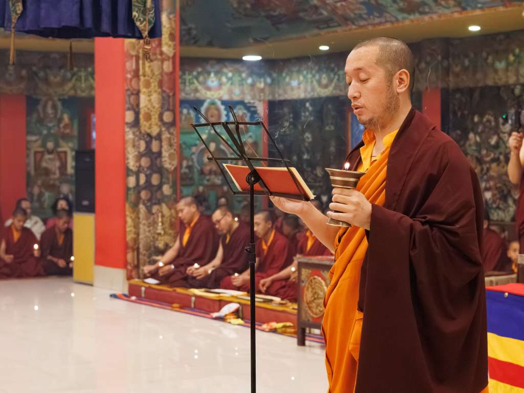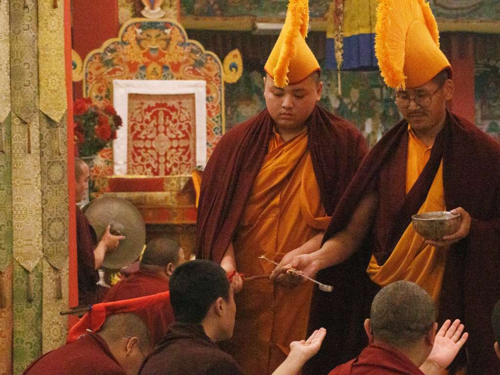 The blessings of the lineage were palpable as this year’s practice was presided over by Kyabje Minling Dungse Rinpoche, the 13th throne holder of Mindrolling who took his seat on the throne and led the gathered assembly during the intensive days of practice. This most fortunate occasion was blessed with presence of the Kyabje Minling JetsĂ¼n Rinpoche, Kyabje Minling JetsĂ¼n Khandro Rinpoche, Kyabje Trulshig Yangsi Rinpoche, the Dorje Lopön Khentrul Marpa Rinpoche, Minling Umdze Lodroe Gyaltsen, along with many rinpoches, tulkus, khenpos, and monks, nuns and lay practitioners from all around the world.