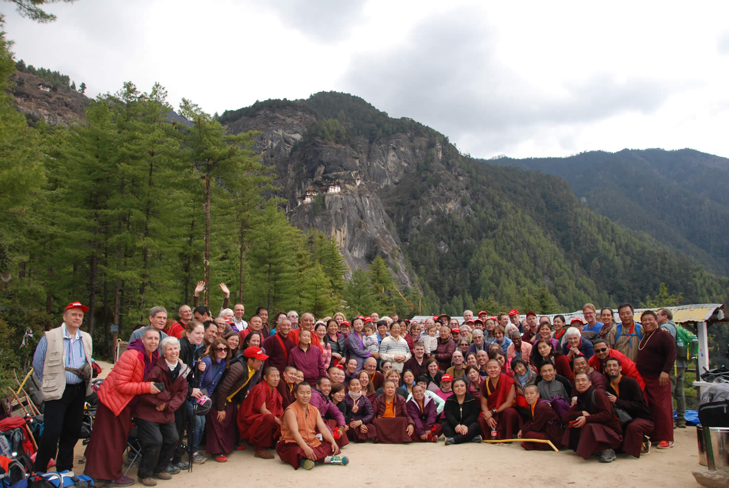 Five days after the wonderful Tse Chu, over 180 members of Mindrolling International’s sangha of monks, nuns and lay practitioners embarked on an incredible pilgrimage to Bhutan, visiting the sacred sites blessed by Guru Padmasambhava. Guided with great care by Her Eminence Mindrolling Jetsün Khandro Rinpoche, and blessed with the presence of the entire Mindrolling Ladrang, this group traveled and practiced together in harmony and with tremendous joy from the 23rd of March to the 4th of April.