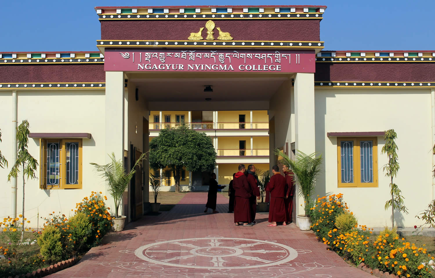 Amidst all of these inspiring and profoundly sacred activities, and in addition to the many ceremonies and drubchens taking place at Mindrolling Monastery each and every month, two projects came to completion here in India — the renovation and expansion of Ngagyur Nyingma College under the direction of Kyabje Khenchen Rinpoche, and the creation of a breathtaking Guru Padmasambhava statue.